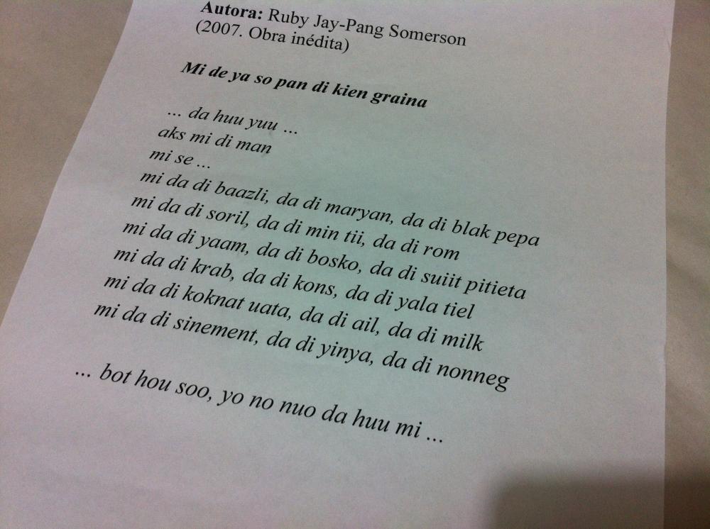 Transcripción al idioma raizal: Ruby Jay-Pang Somerson